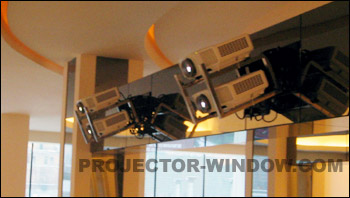 在四臺投影機疊加安裝過程中,為保證大廳美觀、簡潔的整體環境風格,投影機必須安裝在更高的地方。比起以往正前方投射的正常角度,斜下方投射實現難度更大,苛刻的環境要求為投影機安裝提出挑戰。