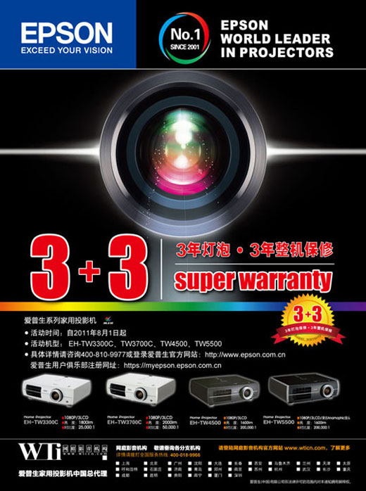 愛普生家用投影機保障政策升級,3年燈泡保修力度空前 |