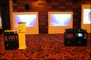本次大會,愛普生精心準備了多套不同的投影解決方案,包括高清被動立體投影方案、雙通道及三通道融合顯示方案、短焦互動投影解決方案、200英寸高亮度大屏幕顯示方案、3LCD技術與DLP技術投影畫面對比方案、便攜投影機+無線演示方案、150英寸大屏幕顯示方案以及愛普生多媒體眼睛、愛普生家庭影院投影機等,體驗愛普生工程機的大畫面、多彩色、高亮度、高分辨率的顯示效果。