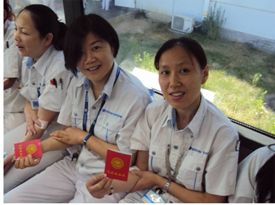 為緩解這一現(xiàn)象,愛普生拓優(yōu)科夢(mèng)蘇州配合政府下達(dá)的無償獻(xiàn)血計(jì)劃,長(zhǎng)期開展了義務(wù)獻(xiàn)血活動(dòng)。一大早,蘇州紅十字會(huì)血站的采血車早早開進(jìn)了廠區(qū)內(nèi)。雖然正值炎熱的夏季,但悶熱的天氣卻絲毫沒有影響前來獻(xiàn)血的員工的積極性,大家主動(dòng)填表、登記和參加體檢,共72名員工進(jìn)行了獻(xiàn)血,獻(xiàn)血總計(jì)20100毫升。紅十字會(huì)血站為每名獻(xiàn)血員工當(dāng)場(chǎng)頒發(fā)了《無償獻(xiàn)血證》,對(duì)獻(xiàn)血員工的無私奉獻(xiàn)精神給予了高度贊揚(yáng)。一位參與義務(wù)獻(xiàn)血的員工表示:“通過獻(xiàn)血不但能促進(jìn)血液循環(huán),對(duì)人的身體十分有好處,并且通過獻(xiàn)血還可以挽救許多人的生命,因此這個(gè)活動(dòng)開展得很有意義。”