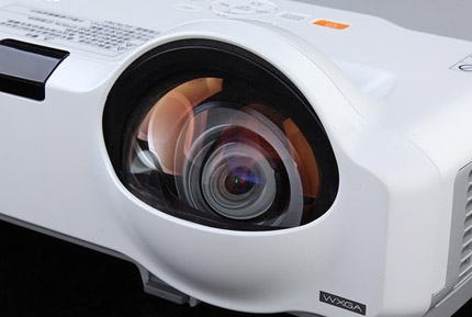 愛普生EB-CS520WN投影機采用白灰色經典搭配,獨特的短焦魚眼設計,給人留下深刻的印象。而該機鏡頭下部,采用了機身一體的設計,這樣不僅可以更好的保護鏡頭,也讓整體更加美觀。該機的外觀尺寸設計為345x277x105