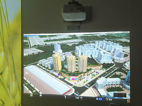 此外,在現場展示中,電子沙盤投影方案的展示讓人眼前一亮。電子沙盤投影方案由4臺愛普生CB-Z11000WNL工程投影機組成。通過投影機內置圖形校正軟件和工作站電腦軟件,校正投影圖像,將圖像同實體模型尺寸完全重合,同時播放炫動的視頻文件,達到炫目的感覺,讓參觀者感受到實體模型的靈動感。