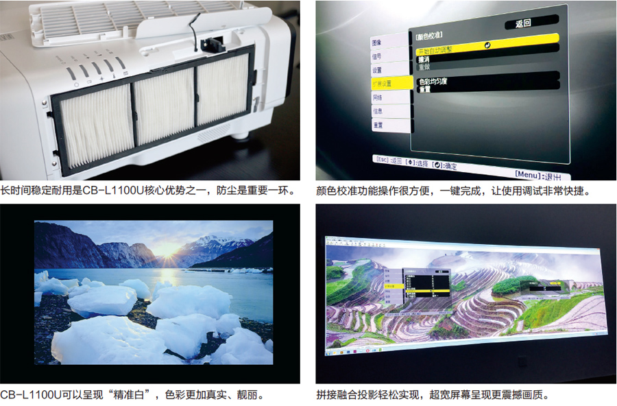 CB-L1100U是愛普生激光工程系列中的主流機型,亮度6000流明,WUXGA分辨率滿足高畫質需求,動態對比度2500000:1。激光光源提供更寬的色域、更純正的色彩平衡,加之4K增強技術以及自動色彩校正功能,可確保畫面效果始終卓越如初。360度安裝、零偏移短焦鏡頭等特性讓工程安裝更快捷簡單。 |