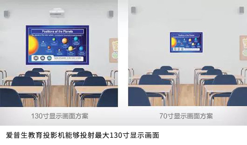 愛普生教育投影機(jī)最大能夠投射出130英寸大畫面,讓坐在后排的學(xué)生也能夠輕松看清課件內(nèi)容。大尺寸的畫面所呈現(xiàn)的精彩課程,在為師生帶來(lái)高效的教學(xué)體驗(yàn)的同時(shí),也幫助師生解決用眼過(guò)度難題。