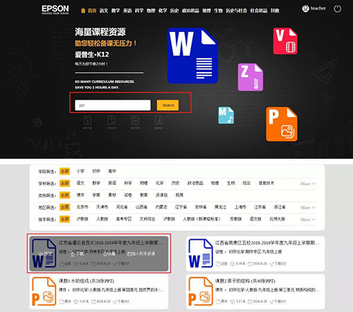 愛普生K12資源平臺依據用戶最熟悉的使用習慣,平臺化搜索、界面一目了然,老師們不用擔心平臺的使用還有額外的學習成本。