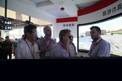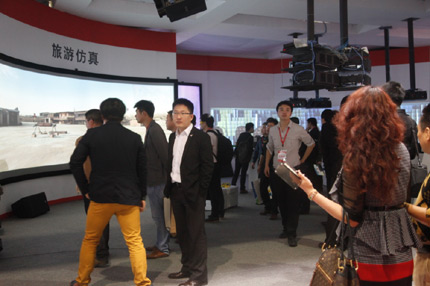 天創&日立展臺展項豐富,除了上面提到的主動立體3D電影外,還有車體投影,旅游仿真,建筑投影等,現場吸引了眾多參觀者,展項設計上通過正投、背投、主動立體、被動立體及拼接融合等展示了日立DLP投影機在不同應用下的卓越表現。參觀者絡繹不絕,饒有興致,活動取得了很好的展示和商機挖掘效果。
