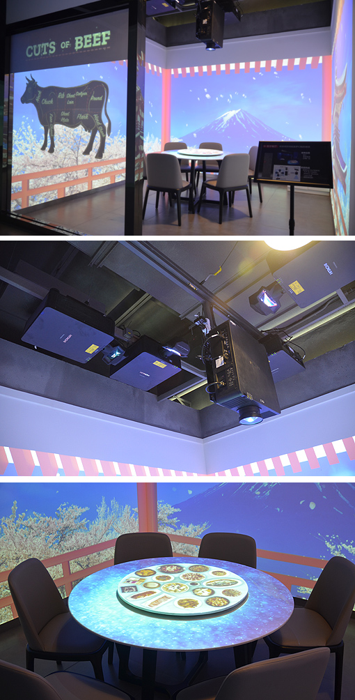 數字餐廳方案,5臺激光工程投影機TCP-BL7500U配合超短焦鏡頭,在封閉空間創造夢幻般的感受。