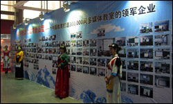 展會中,長達10米的“照片墻”布滿了全國幾百家用戶應用鴻合交互教學方案的溫馨照片。展位上十位清新動人的少數民族姑娘展示了鴻合科技在全國各民族中取得的優秀成果。“照片墻”中包含了海拔4600多米的帕里小學使用鴻合電子白板的照片。帕里小學是世界上實地應用電子白板教學海拔最高的教室,鴻合科技以紅外白板、專業的藏
