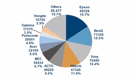 據(jù)國際知名調(diào)研機(jī)構(gòu)IDC針對(duì)2014年中國第四季的投影機(jī)銷售調(diào)查數(shù)據(jù)顯示,經(jīng)過2014年最后一個(gè)季度的角逐,綜合了整體銷量和市場(chǎng)占有率,全新出爐的國內(nèi)投影機(jī)行業(yè)十強(qiáng)名單中首次出現(xiàn)鴻合的名字!這也是鴻合自主品牌投影機(jī)首度整體市場(chǎng)占有率躋身行業(yè)前十。
