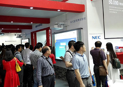 此次展會,鴻合拿出了全系列產品,包括鴻合精品錄播教室、鴻合HiteVision交互智能平板、投影機、電子白板、鷹眼全高清視頻展臺等。同時,今年4月正式與鴻合牽手的國際顯示領域巨頭NEC,旗下高端投影機和教育投影機也出現在鴻合展位顯要位置。NEC擁有百年文化積淀,致力于顯示產品的設計、研發和制造也有30余年歷史,不僅在產品研發上精益求精,在工程投影領域也獨占鰲頭。