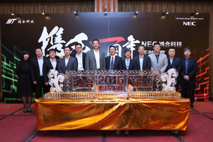 NEC為鴻合頒發“NEC•鴻合科技攜手一周年紀念”獎杯