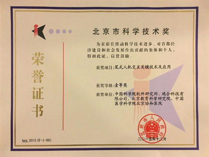鴻合科技筆式人機(jī)交互關(guān)鍵技術(shù)應(yīng)用獲北京市科學(xué)技術(shù)一等獎