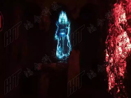曾經(jīng)盛極一時的古格王國,是藏地文化中濃墨重彩的一筆,而此次“迷藏”之旅中就設有“古格王國”區(qū)域。當游客走過藏公主時,公主的靈魂就從身體慢慢飄出,影像直接投射紗幕上。讓你在有限的區(qū)域里體驗一把“靈魂出竅”的刺激感。