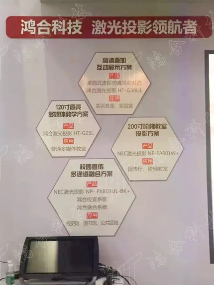 展會現(xiàn)場,鴻合大尺寸電子白板和大尺寸交互平板同臺亮相,作為教育裝備的主力軍,它們在基礎(chǔ)教育領(lǐng)域皆有不俗的表現(xiàn)。除此之外,鴻合激光投影機(jī)再展實力,高清疊加互動解決方案獨領(lǐng)風(fēng)騷,吸引眾多眼球。