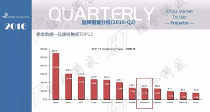 目前,在教育市場中,鴻合的激光投影產品已經占據半壁江山,得益于激光投影的成功,鴻合在整體投影市場中的占比也在不斷提升,“前景咨詢”最新一份數據顯示,鴻合HiteVision品牌投影機已經躋身行業前八,市場份額緊跟著愛普生、明基、NEC等國際品牌。