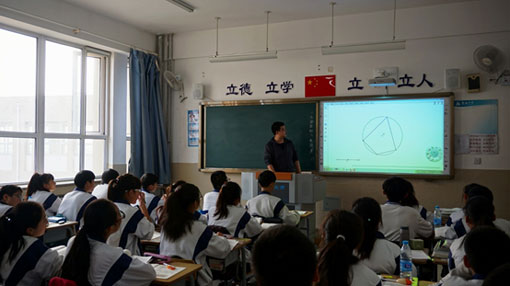 此前,記者在一次走訪天津K12階段學校的過程中,通過親身的體驗和對校領導老師的采訪,深入了解了學校對于激光投影機的使用情況。目前天津市多家中小學都在鴻合激光投影機上市之初,即選擇第一時間部署這一裝備。在大部分學校中,一半是傳統的黑板,一半是大尺寸電子白板+鴻合超短焦激光投影機的組合,已經是教室中的新標配。