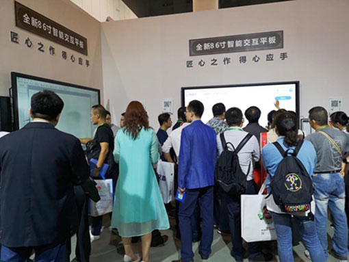 在琳瑯滿目的展品中,鴻合科技最新研發的高科技黑板吸引了眾多參觀者的目光。鴻合科技股份有限公司高級副總裁龍旭東在記者采訪中表示:“這是我們全球第一款推出的采用全貼合技術的智能交互黑板,適應了現代化多媒體的教學,同時又兼顧了傳統的粉筆書寫,能夠大幅提升我們的教學效率,提升學生的學習興趣。”