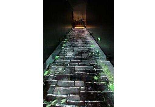 “雨巷”采用LED互動(dòng)地屏,會(huì)感應(yīng)觀眾腳步,在地面上浮現(xiàn)片片漣漪
