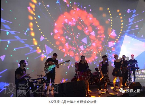 NEC高亮度雙色激光工程投影機與朋克樂隊在現場帶來超炫4K沉浸式音樂盛宴,高清晰照亮舞臺新視界,NEC工程投影機配合超短焦鏡頭創造了精彩方案。