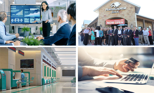 PlainsCapital銀行以現代化設施為客戶提供更好的服務,位于阿靈頓的北德克薩斯分行,在10000平方英尺的銀行和商業貸款大廳中,配備了交互式視頻終端,客戶可以直接與遠程客服專員進行視頻會議,咨詢并辦理業務,輕松直觀,無需等待。