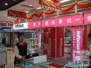 [投影之窗] 在歐美,投影機產品是能夠在各大超市的貨架上找到,這是投影機產品普及化的具體表征。在國內市場,由IT產品專賣店逐漸走向大眾消費市場的變革也在逐步進行。在北京,即將建成的鼎好電子商城二期項目中,領導全球投影的富可視投影機在六層開設的品牌專賣店,正式吹響了美國富可視品牌進軍投影機零售行業的號角。