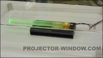 Lasers展示其推出的小型投影儀用光源的激光器模塊,可單獨輸出紅色、綠色及藍色激光,或者同時輸出3種激光。而運行的電量供應(yīng)則來源于干電池。