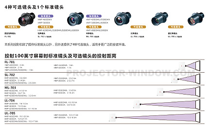 這三款投影機可以按照需要進行360度全方位投影,安裝方式靈活,可以用于各種工程場所。除標準鏡頭外,另提供4種鏡頭可選。鏡頭記憶功能可存儲3種鏡頭設置,包括位置、變焦和聚集。、