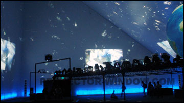 “世博會水滴”方案采用三臺GX-6400,分別采用背投和垂直投影設計,建造了一個仿真的“泉水”,