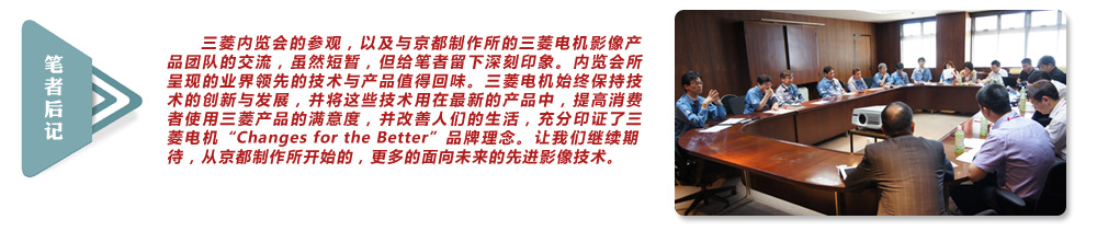 投影之窗資深記者應三菱邀請,作為行業媒體代表之一,到訪了京都制作所,有幸親自參觀并了解三菱電機全線的產品及解決方案,并同京都制作所的負責人進行了交流。 |
