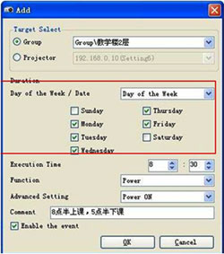 4.0軟件內置了人性化的時間控制程序,能按星期、組別甚至精確到每天的每個時段進行自定義演示,且允許用戶提前設定每臺的開關機時間,根據學期課表做到統一有效的時間管理。不但如此,PC