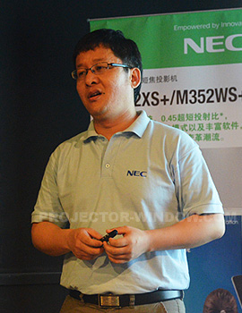 NEC(中國)顯示產品技術部部長崔永新展示的一系列數據表明,在全球范圍內,DLP與LCD投影機市場份額近乎等分,唯有國內比例呈失衡態勢,并且DLP投影機在主流的3000流明~4000流明亮度段呈現弱勢。NEC認為,從技術層面來看,DLP芯片制造工藝精細化程度更高、亮度適應范圍更廣、支持1080P和高流明播放,未來在中國市場的份額將高速增長。然而,中國教育市場又不得不面臨尷尬的局面:缺乏具備創新能力和研發實力的國際品牌廠商,而是以集中代工產品為主,導致了產品差異化不足、品質備受詬病。崔部長表示,M2系列產品是NEC十年磨一劍推出的旗艦型DLP商教系列,代表了NEC一貫以來的創新能力和研發實力,未來NEC也將以負責任的態度為商教行業帶來更多高品質的投影機產品。
