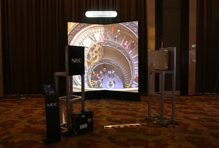 如今中國已成為展覽展示行業最大和最富有潛力的市場,NEC充分考慮展覽展示行業特性與需求,主動式3D激光投影融合方案,采用了2臺NEC