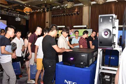 NEC根據市場需求,著力布局激光產品線,目前已擁有液晶單色激光、單片單色激光、三片DLP單色激光、三片DLP雙色激光、三片DLP三色激光等多種光源和技術組合的激光投影產品,使其全方位地滿足各行業領域的多種需求。