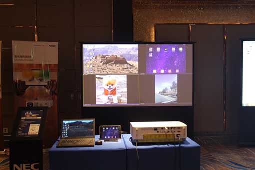 高端商務的典型特點之一便是輕松靈活的顯示方式和協作方式,NEC現場展示的MultiPresenter無線協作軟件,它被稱之為最高性價比的解決方案,專為高端商務辦公而設計。