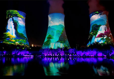 40000流明的亮度使每臺投影實現在210-230米的投射距離向塔表面投射40米寬、20米高的畫面,投影面積已經超過塔體的顯示面積。超高的亮度使長距離亮度的衰減與環境光干擾后,仍然能在高塔表面呈現明亮的畫面。
