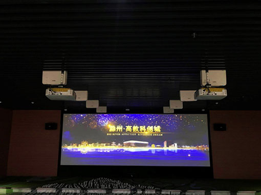 滁州高教科創(chuàng)城利用數(shù)字沙盤和融合投影主屏幕向觀眾直觀展示科創(chuàng)城布局及規(guī)劃。展示廳共采用了10臺CR5450HL激光投影機,其具有4500流明高亮度與1920*1080全高清分辨率。展示廳中央由2臺CR5450HL采用正投融合的方式,將科創(chuàng)城未來繁榮發(fā)展景象投射在巨幅屏幕上,與地面8臺激光投影機融合投射出的沙盤交相呼應(yīng),加以CR5450HL激光光源的非凡色彩表現(xiàn)力和融合拼接中色彩的一致性,把未來科創(chuàng)城鳥瞰圖生動地搬到了參觀者的面前,并伴隨著立體聲效解說營造出能讓人身臨其境的參觀體驗。