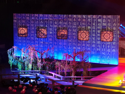 演出環(huán)節(jié)中,加上不時(shí)升起的背景幕配合,模擬出動(dòng)態(tài)立體效果。舞臺(tái)中央豎起的巨幅投影長(zhǎng)軸畫卷,畫面由4臺(tái)NEC高端工程投影機(jī)融合而成。PH3501QL+高端工程投影機(jī)所具備的智能融合功能,能最大支持4臺(tái)投影在同一平面內(nèi)實(shí)現(xiàn)拼接融合。搭配NEC提供的專用軟件Multi