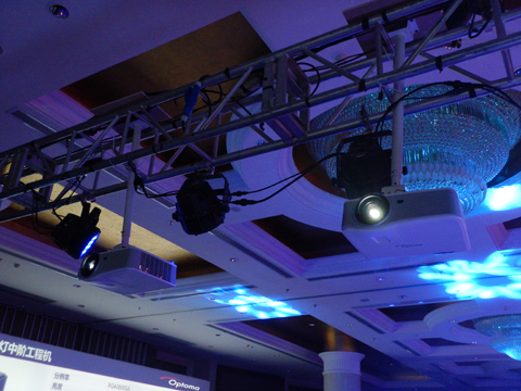 在發布會現場,奧圖碼精心搭建工程投影方案展示區域,真實還原多種工程應用使用情境,包括神筆酷甩、客廳3D
