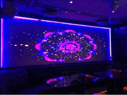 項目描述: KTV的多間包房采用了奧圖碼OEV953UT激光超短焦投影機,五個包房每個房間用兩臺投影機和融合器GB-200做畫面融合。激光光源超長壽命無需更換投影機燈泡,超短焦距讓投射光線不會打到人體上。包房可根據需要,任意更換場景主題。