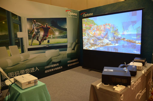 現(xiàn)場畫面演示的是奧圖碼HUD566,其搭載UHD顯示技術(shù),能夠輕松顯示真實(shí)流暢的830萬有效像素的4K超高清大畫面。2500流明再配以