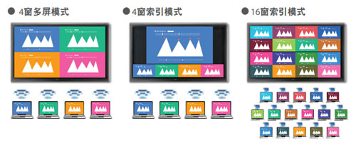 可輕松將手中的電腦圖像數(shù)據(jù)無線傳輸。減少在演講交替時拔出、插入連接纜線的麻煩。多臺計算機數(shù)據(jù)可整合到一個監(jiān)視器屏幕;實現(xiàn)只通過一臺計算機與監(jiān)視器連接,向多臺監(jiān)視器同步發(fā)送信息的功能。