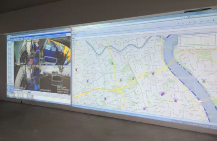 車聯(lián)網(wǎng)實(shí)際應(yīng)用解決方案,采用二臺(tái)松下工程投影機(jī)融合系統(tǒng),通過(guò)松下投影機(jī)的色彩亮度控制技術(shù),使得整個(gè)畫(huà)面的色彩及亮度得到充分的體現(xiàn),公司自建3G網(wǎng)絡(luò)中心,運(yùn)用車聯(lián)網(wǎng)技術(shù)控制所有車輛包括出租、大巴及禮賓車輛的運(yùn)營(yíng)狀態(tài),在畫(huà)面地圖上可以輕松放大任一車輛的實(shí)際運(yùn)行狀態(tài),運(yùn)用高亮度分辨率工程投影機(jī)還原所有細(xì)節(jié)。