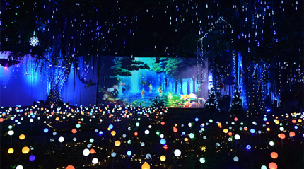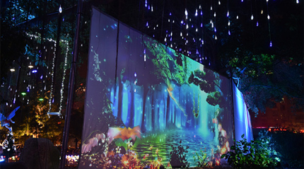 除了羅馬柱外,地面裸眼3D投影和童話世界也應用了松下投影機,打造了一個個引人無限遐思的燈光場景!巴捠澜纭敝袧M樹懸掛“流星”,PT-SLX16K純彩控制技術(shù)可實現(xiàn)出色的顏色效果與屏幕上演繹的童話故事交相輝映,仿佛進入了夢幻美好的童話世界。