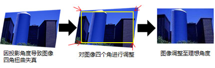 新品投影機安裝簡便、應用靈活。具備四角校正功能和水平/垂直梯形校正功能*1,可對投影圖像的每一個角進行單獨調整,從而獲得理想的畫面。