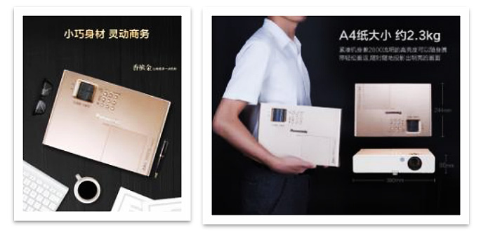 Panasonic投影機便攜新品PT-SX301C系列突破傳統,結合時下最流行的“土豪金”元素,為用戶帶來“與眾不同”的全新視覺體驗。