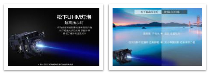 商務便攜系列新品采用松下專利UHM燈泡,光學功效高,相對于LED燈泡,能夠提供更高亮度,并且在白天不拉窗簾的環境下,依舊保持投影畫面色彩鮮艷。