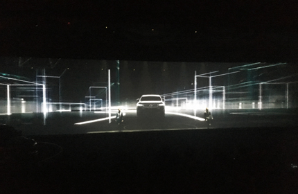 在發布會的現場閃耀無比,24臺松下激光工程投影機PT-SRZ12KC采用融和的方式展現20米×5米超大畫面,12000流明高亮度影像呈現在紗幕上,實現夢幻的全息影像,帶給觀眾身臨其境之感,真正體驗了與全新S90長軸距豪華轎車親密接觸,可以清晰欣賞到車身的每一處細節。