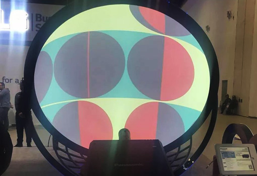 松下2018年新品ET-D3LEF70C魚眼鏡頭具有廣角鏡頭位移功能,最大開角達183°。另外它4K+的高分辨率可以輕松應對各種大型活動。展項中只使用了一臺投影機配合廣角魚眼鏡頭即可打滿半球,呈現出色彩亮麗的球幕投影。