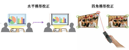 梯形校正功能,能夠允許用戶任意調整畫面的四角,從而滿足在不同環境中使用,創造完美的矩形圖像。這些功能在實際應用中帶來了非常強的人性化體驗,使得