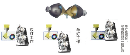 700系列投影機的低調內斂,雙燈技術設計,兩個燈泡可以同步工作,也可以單獨使用。無論是用戶關閉、還是其中一個燈泡出現狀況,投影機都會自動切換到另